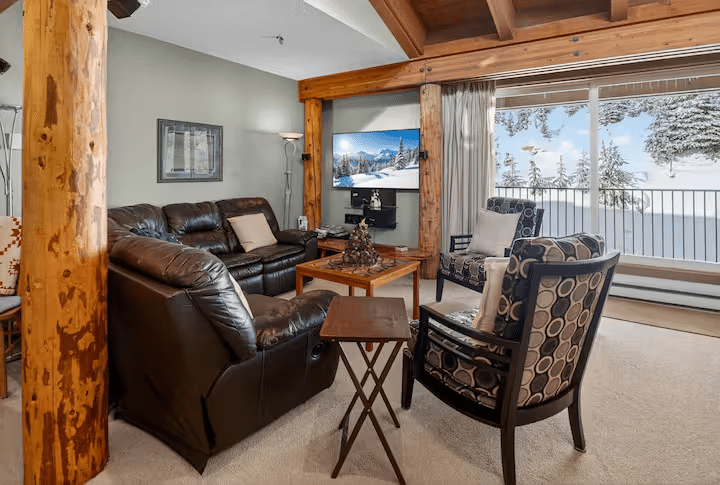 Wake up to fresh powder, step out your back door, and you’re on the slopes. This cozy 4-bedroom Big White lodge combines mountain charm with modern comfort – think fully equipped kitchen, dual living spaces, and a private hot tub with stunning views.